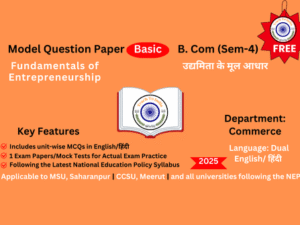 Exam Preparation for Fundamentals of Entrepreneurship - उद्यमिता के मूल आधार: This model paper is designed for graduation students as per the late...