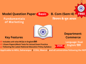 Exam Preparation for Fundamentals of Marketing - विपणन के मूल आधार: This model paper is designed for graduation students as per the latest Nationa...