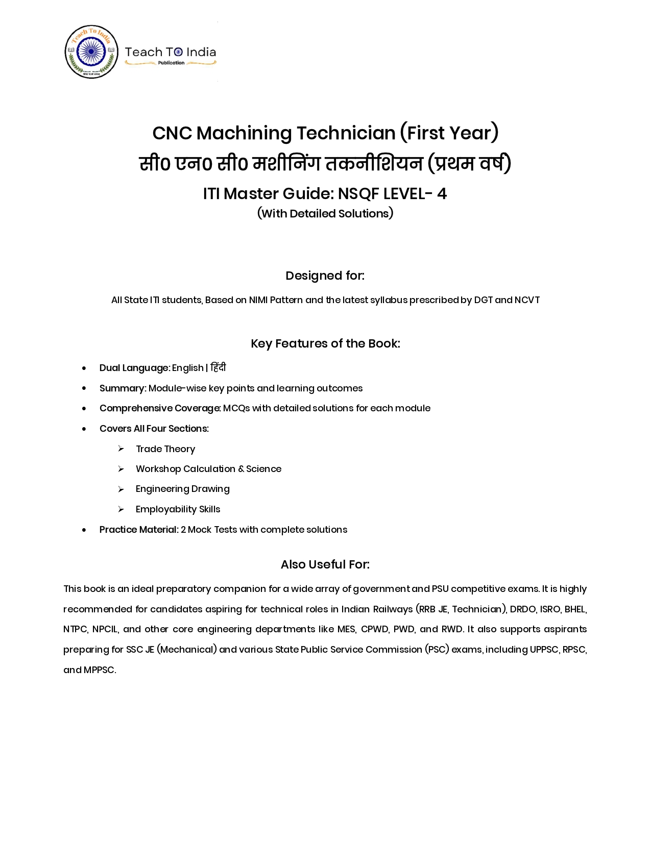 The Teach To India ITI Master Guide for CNC Machining Technician is designed to help students succeed in academic exams and job-oriented preparation.