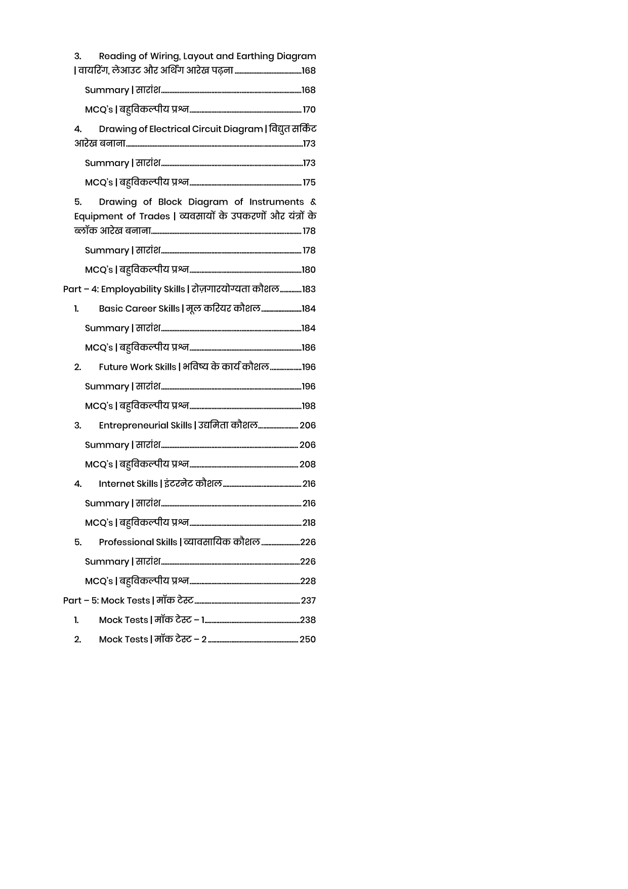 यह पुस्तक आईटीआई छात्रों के साथ-साथ प्रतियोगी परीक्षाओं जैसे आरआरबी एएलपी, आरआरबी जेई, डीआरडीओ, इसरो, भेल, एनटीपीसी, एनपीसीआईएल, एनसीएल, सीसीएल, बीसीसीएल, एसईसीएल, डब्ल्यूसीएल, सीपीआरआई, एनएचपीसी, ओएनजीसी, आईओसीएल, सेल, एसएससी जेई, एमईएस, सीपीडब्ल्यूडी, पीडब्ल्यूडी और राज्य विद्युत बोर्ड परीक्षाओं के लिए भी उपयोगी है।